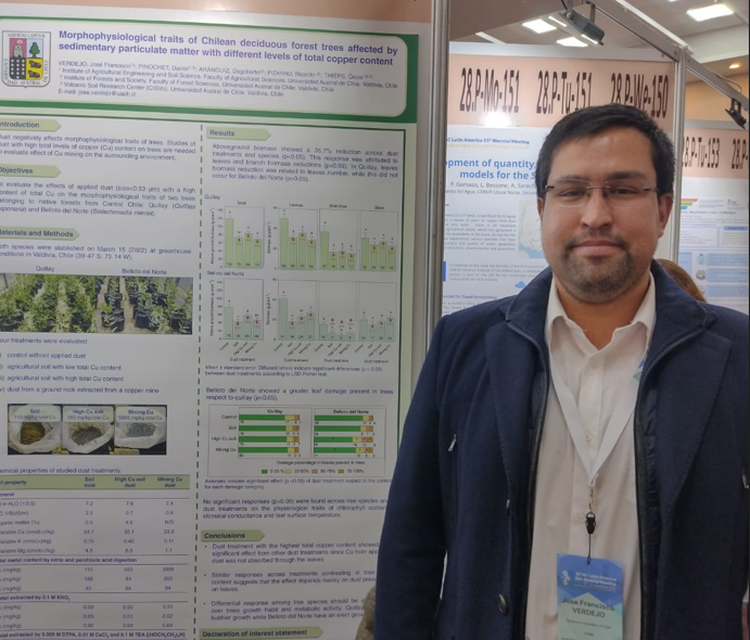 22 agosto, 2023 Paola Segovia Escuela Estudiantes de magíster y doctorado asistieron a Congreso Latinoamericano de Ciencia del Suelo Hace unas semanas se realizó el XXIII Congreso Latinoamericano de Ciencia del Suelo (CLACS) efectuado entre el 30 de julio y el 4 de agosto en Leer mas