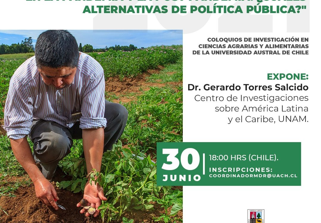 «Los Sistemas Agroalimentarios Localizados en la pandemia y la post pandemia. ¿Cuáles alternativas de política pública?”, será la charla que se efectuará en los Coloquios de Investigación en Ciencias Agrarias y Alimentarias de la Universidad Austral de Chile, organizados por la Escuela de Graduados de la Facultad de Ciencias Agrarias y Alimentarias y el Magister Desarrollo Rural de la Universidad Austral de Chile.